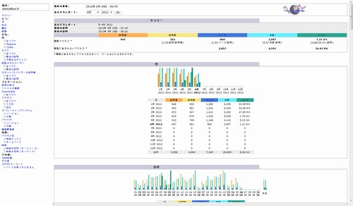 グラフィカルなアクセス解析プログラムである。理屈はよくわからないが、勝手に日本語表示されるような気がする。データ更新のタイミングはサーバによって違うと思うが、大抵、リアルタイムではなく、一日一回ということになるだろう。