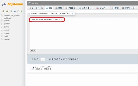 phpMyAdminで、日本語はで日本語として処理するように設定しよう。なお、文字コードはUTF-8とする。