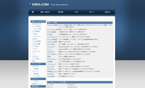 レンタルサーバで出来ることというのは、はっきり言ってほぼ決まっているので、すべてのサーバ会社で共通のコントロールパネルを使ってくれれば、ユーザの利便性はぐっと上がると思うのだが、なぜか国内格安サーバの場合、コントロールパネル部分は自社開発(?)で作られていることが多く、見た目も操作方法もまったく違う。たとえば、下の二つの画像は、XREAのコントロールパネルとCPIのコントロールパネルだが、別物であるということが一目でわかると思う。